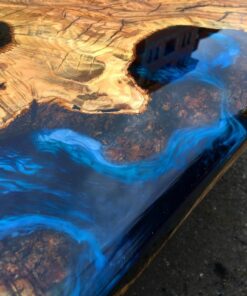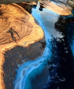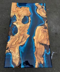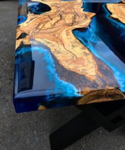 Custom Olive Wood 66×54 Inches Blue Ice Epoxy Counter Table- 38 Inches s7 Legs- For Lisa