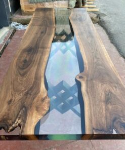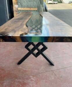 Custom Order 36×64 Inches Walnut Wood Clear Epoxy Table and Metal Legs For Micheal