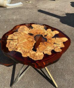 Custom Order Olive Wood 31×63 İnches Red Transparent Epoxy Ocean Led Coffee Table with U Wooden Legs %50 payment