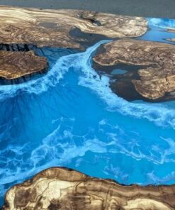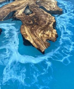 Custom Order Olive Wood Live Edges Blue Epoxy Dining Table- For Karen- 35 x63 Inches