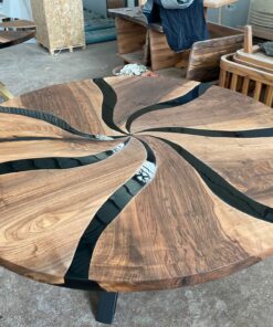 Custom order Walnut wood – Iron ore Epoxy – 48 inches Round table – For Ciara