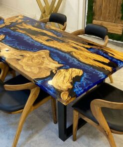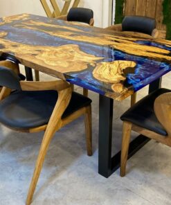 Deep Blue River Olive Epoxy Table- Dining Table – River Table – Resin Table- Custom Order