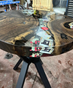 Diameter Dark Walnut Clear Round Poker – Epoxy Table