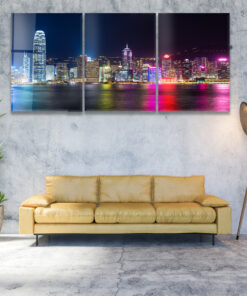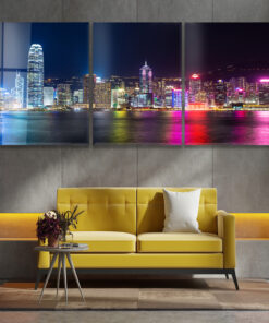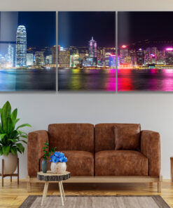 Hong Kong At Night Landscape Trio – Glass Wall Art – Epoxy Wall Art – Resin Wall Art