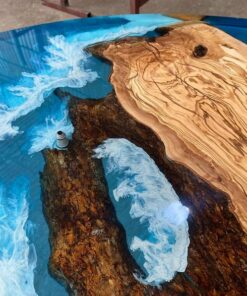 Personalized 3D 80×135 Cm Olive Wood Resin River Ocean Sea Green Epoxy Table- Without Legs- For Debbie